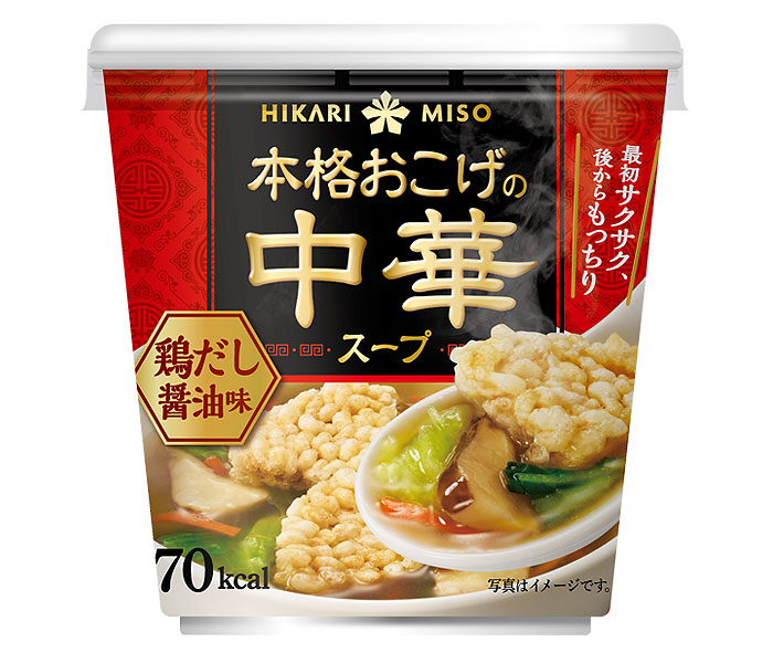「本格おこげの中華スープ」は、中華料理店で出されるように本格おこげ、風味豊かなとろみ中華スープを合わせたカップスープ。おこげを後入れすることで、最初はサクサクした食感、食べるうちにもちもちした食感を楽しめる。「鶏だし醤油カップ」と「海鮮しおカップ」を提案する。2品ともに同270円。