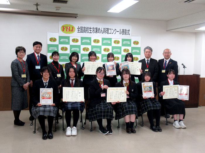 全国の高校生(家庭クラブ連盟加盟校)から冷凍麺を使ったオリジナルレシピを募集するもの。次世代を担う若年層にPRすることを目的に昨年から開催している。表彰式の席上、審査に参加した協会の白潟昌彦会長(キンレイ社長)は「どの料理も完成度が高かった。冷凍麺をもっと身近に利用してもらえれば」などとあいさつした。