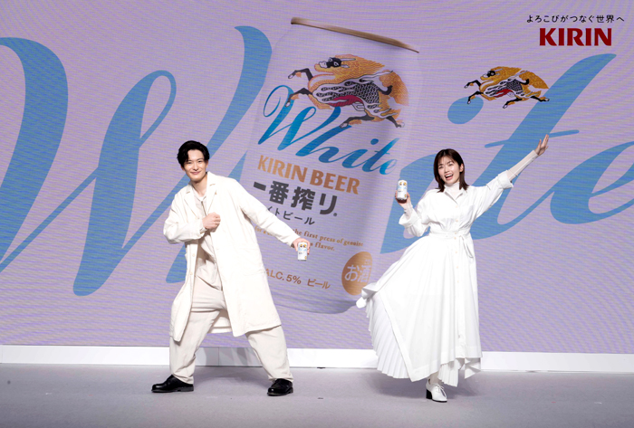 新しいおいしさを伝えるため、ビールCMには初登場となる岡田将生さん、小芝風花さんを起用。14日から放映開始した4篇で、初めて出会うビールにワクワクする二人の表情を伝える。