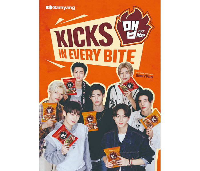 韓国発の「ブルダック炒め麺」をグローバルに展開する三養食品は、2023年に立ち上げた「MEP(メップ)」ブランドのグローバルアンバサダーに「ENHYPEN (エンハイプン)」を起用した。「Kicks in every bite ー食べる度に走る刺激ー」をスローガンに旨辛ラーメンの魅力を発信し、日常に刺激と楽しさをプラスする体験を提供していく。