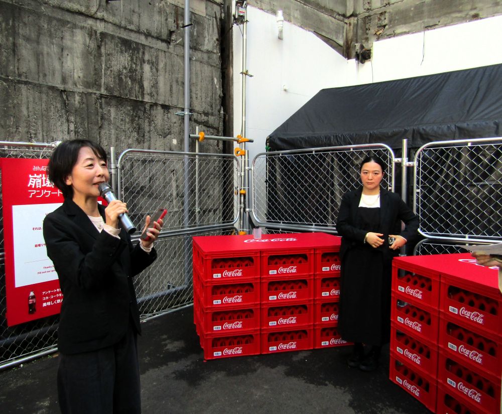 17日、会場で発表した日本コカ・コーラの田口美穂サステナビリティ推進部シニアディレクターは「ただ崩壊した状態をお知らせしたいのではない。実は皆さんひとりひとりの何気ないポイ捨てが崩壊のきっかけになっているかもしれないということに気づいていただきたい」と語る。