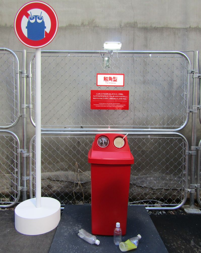 ストロー付きのテイクアウトカップが刺さった状態は触角のようにも見えることから、日本コカ・コーラはこれを「触角型の崩壊リサイクルボックス」と表現して展示。
