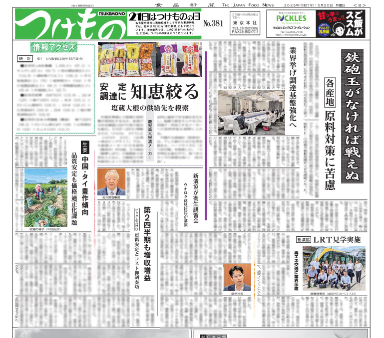 ・ピックルスHD 第二四半期も増収増益 原料安定とコスト抑制奏功