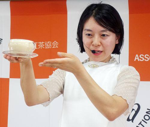 これは紅茶の普及活動の一環として、紅茶に関する専門的な知識や技術を取得したティーインストラクターが、独自に考案した紅茶メニューを実演し、そのテーマ性やパフォーマンスなど競うもので、毎回テーマを変えて実施。12回を迎えた今回は「材料4つでデザート・ティークリエーション(Dessert Tea Creation♪)」をテーマに行われた。