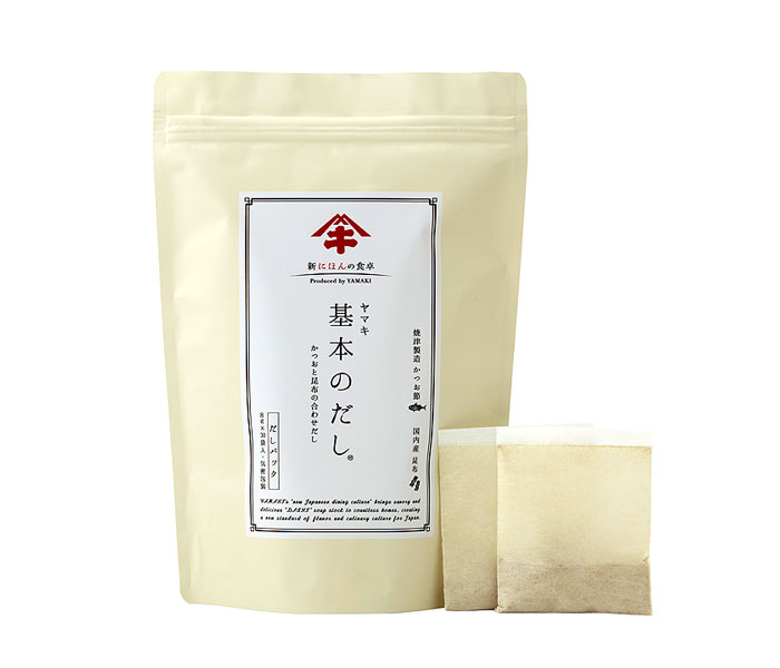 同品はヤマキが「理想のだし」を追求し、素材の持ち味を生かしながら、どんな料理にも寄り添うだしとして開発した「基本のだし」。ほんのり下味を付けた日常使いのだしパックで、2016年の発売以来、日常の食卓に寄り添うだしのスタンダートとして愛用されている。8g×30袋。販売価格(ヤマキ公式オンラインストア)は2592円(税込み、送料別)。