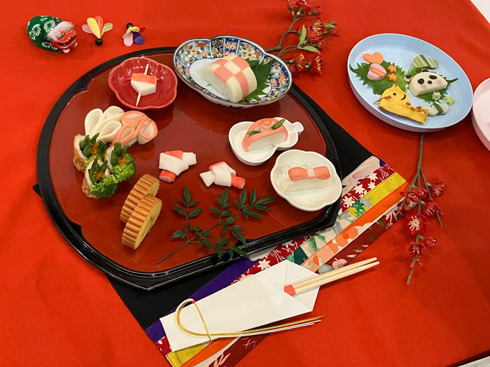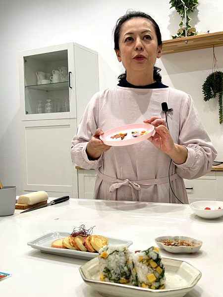 鈴木氏と同社商品マーケティング課チーフの稲葉翔氏、料理家の𠮷田麻子さんによるトークセッションでは、おせちの品目の意味・由来を解説するとともに、調理のコツを指南。練り製品の楽しさを伝えるために一正蒲鉾が公式ホームページで298種を公開している「ねりデコ」も提案した。「ねりデコ」は練り製品の飾り切りで、さまざまなキャラクターやモチーフを表現したもの。親子で楽しむことができ、おせちやクリスマスから毎日の食卓やお弁当などの彩りとしても利用できる。その後、おせちのマンネリ感の解決策としてアレンジメニューを紹介。𠮷田さんが「かまぼこのチヂミ風」と「伊達巻おにぎり」を調理実演し、作り過ぎてしまったおせちの利用法を披露した。
