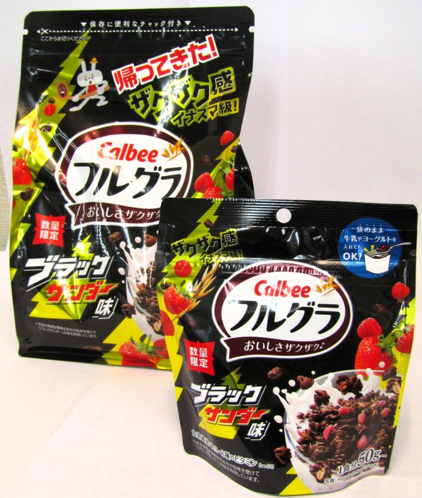 11月10日、袋にミルクやヨーグルトを入れて食べる新商品「フルグラ ブラックサンダー味」(50g)を関東のファミリーマート一部店舗で数量限定発売する。