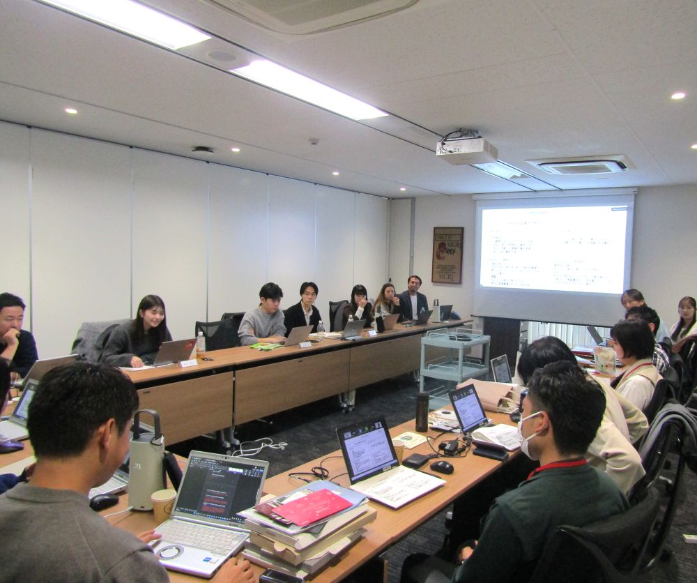 10月29日、味の素AGF本社(東京都渋谷区)で東京支社ギフト営業グループの社員に向けて、百貨店向けギフトの販促企画をプレゼンテーションするのは11人の学生。今回は、代表して近藤流(はる)さん(大学3年)、中田莉子さん(大学2年)、柴田皓耀さん(大学3年)が取材に応じた。