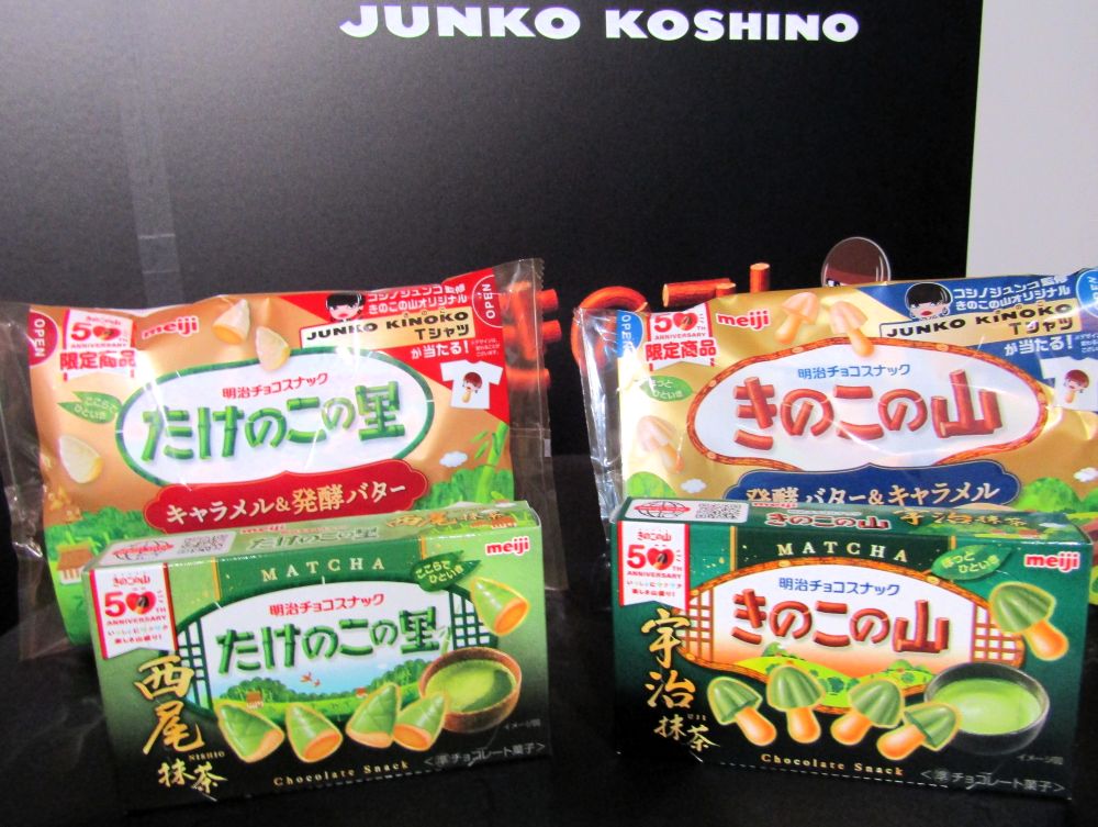 10月にはコシノジュンコさんとコラボ。コラボ企画で誕生した「きのこの山発酵バター&キャラメル」と「たけのこの里キャラメル&発酵バター」の大袋タイプ2品は10月14日から期間限定で発売し好スタートを切った。「通常の新商品を遥かに上回るボリュームがついている」という。