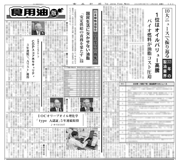 ・10大ニュースで振り返る 2025年の製油業界 1位はオイルバリュー高騰 バイオ燃料が油脂コスト圧迫