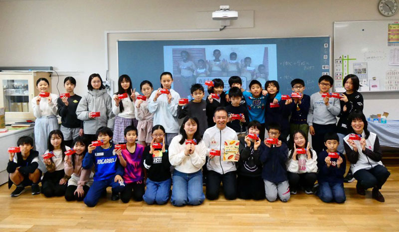 この日、題材としたのはカカオ産地の子どもたちを支援する「1チョコfor1スマイル」。子どもたちに、チョコレートを通じてSDGsを自分ごと化していくことを目的とした。先生役を務めたことについて、森社長は「子どもたちに身近なチョコレートを題材にSDGsを自分ごと化して理解を深めてほしいと思い授業を行った。私も食育活動を自分ごと化したいと考えた。社員も当社の食育活動に注目して自分ごと化してほしい」と語る。