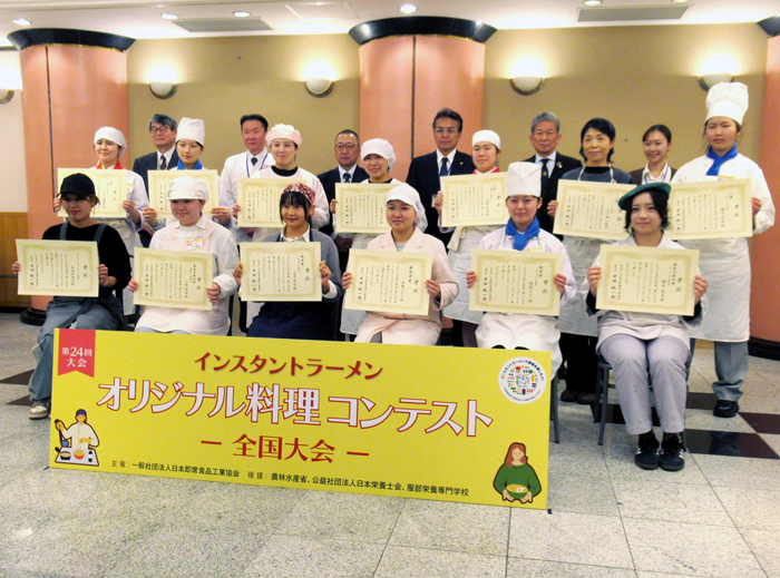 主催は日本即席食品工業協会(井田純一郎理事長)で24回目。農林水産省、日本栄養士会などが後援。「このアイデアレシピを“真似してみたい!作ってみたい”」をテーマに、即席麺の特徴である「簡単・便利!」を生かした栄養バランスの良いレシピを全国から募った。