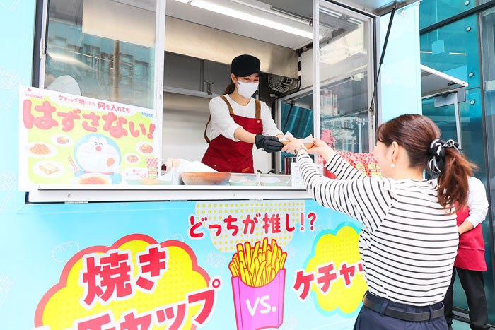 キッチンカーでは通常ケチャップと「焼きケチャップ」の食べ比べ
