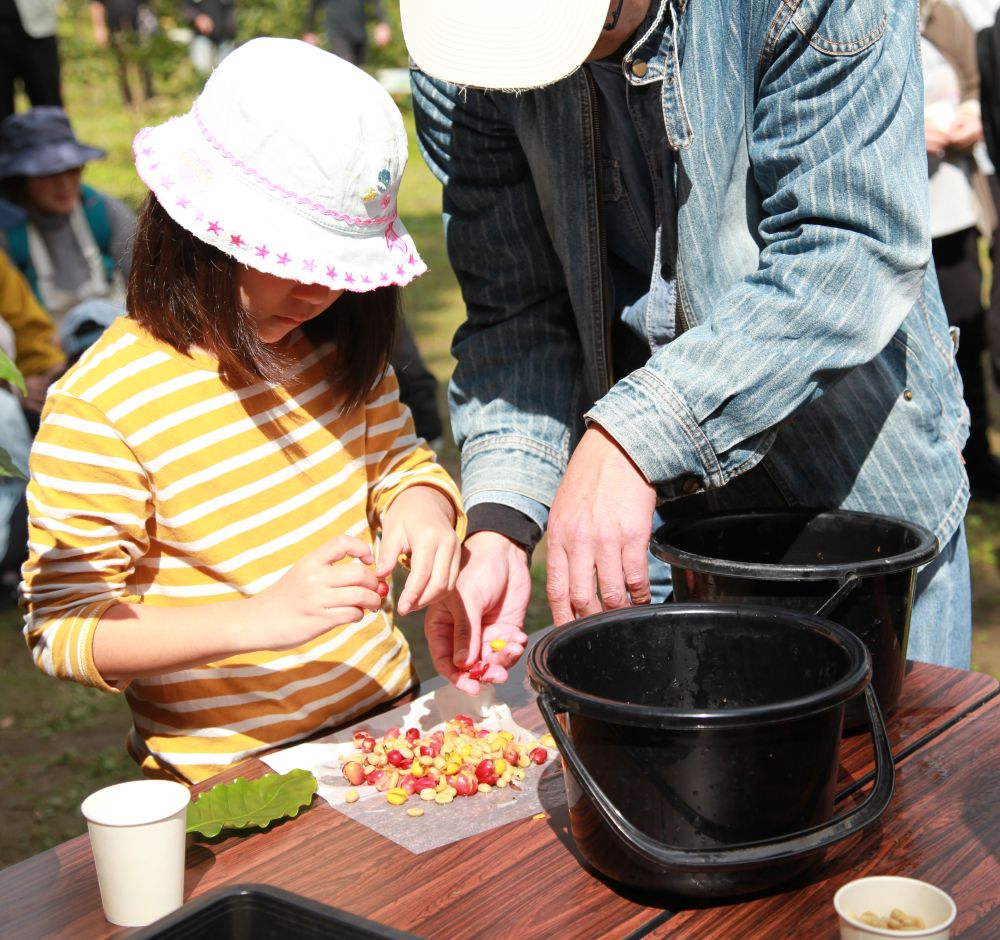収穫祭には21の生産者が参加し、収穫体験ができる農園エリアと、コーヒーの焙煎やハンドドリップ体験のできるエリアの2つに分かれてイベントが実施された。