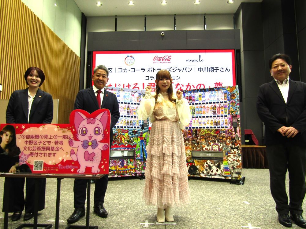 自販機はこんなに魅力的 中川翔子さんが中野区愛ぶつけたコカ・コーラ自販機が登場 売上の一部を中野区の若い世代のために寄付