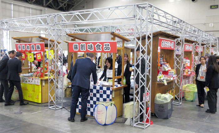 中部メイカン(岐阜市、小寺仁康社長)は3月18日、名古屋市中小企業振興会館で「2026年春季展示会」を開催した。当日は、取引先関係者約350人を招待。新規24社を含むメーカー178社(ドライ125、チルド37、酒類14、その他2)が出展し、今春夏の新商品やイチ押しをPR。試食は105ブースで提供され、人気の屋台コーナーには12社が暖簾を並べた。