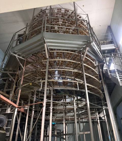 スパイラルクーラーで冷却