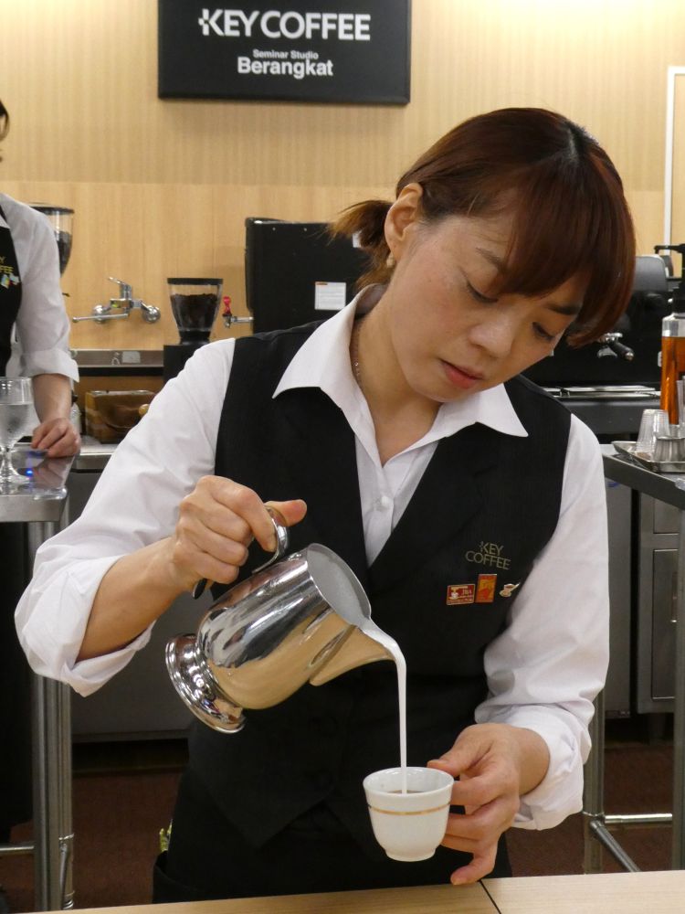「カフェマッキャート」を実演するキーコーヒーの結城志帆氏