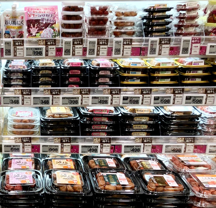 量販では、紀州産の価格高騰を受けて値上げや量目変更が進むほか、中国産で国産の不足を補うなど商品構成の見直しが進んでおり、売場維持が重要課題となっている。