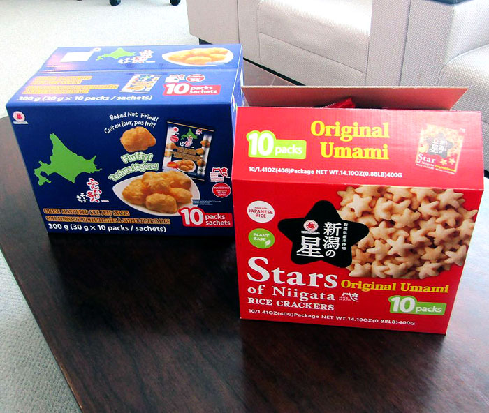 「新潟の星 甘から」と「ふんわり名人 チーズもち」のケース