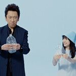 【写真】「サントリー天然水」2LPETの空容器をたたむ布袋寅泰さんと芦田愛菜さん