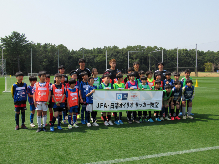 天然芝のピッチで記念撮影